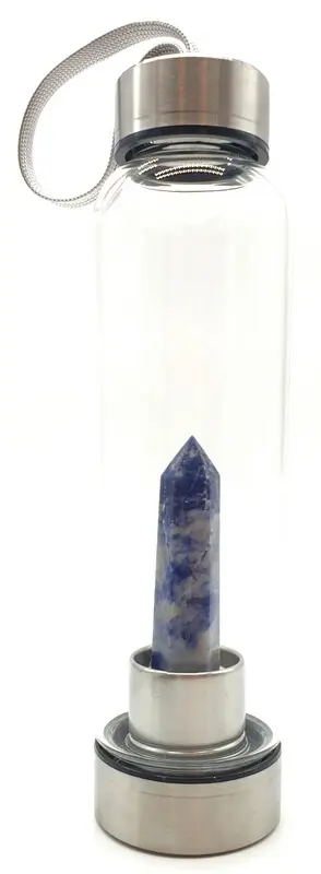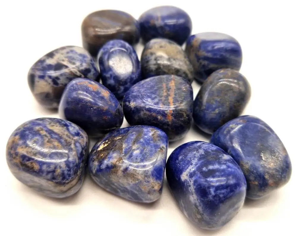 La Sodalite est un minéral bleu foncé veiné de blanc. Son nom provient de l'association de deux compositions chimiques : soda pour sodium et du grec lithos pour pierre. Ses vertus permettraient d'ouvrir fortement le troisième oeil et permettraient d'apaiser les esprits agités.