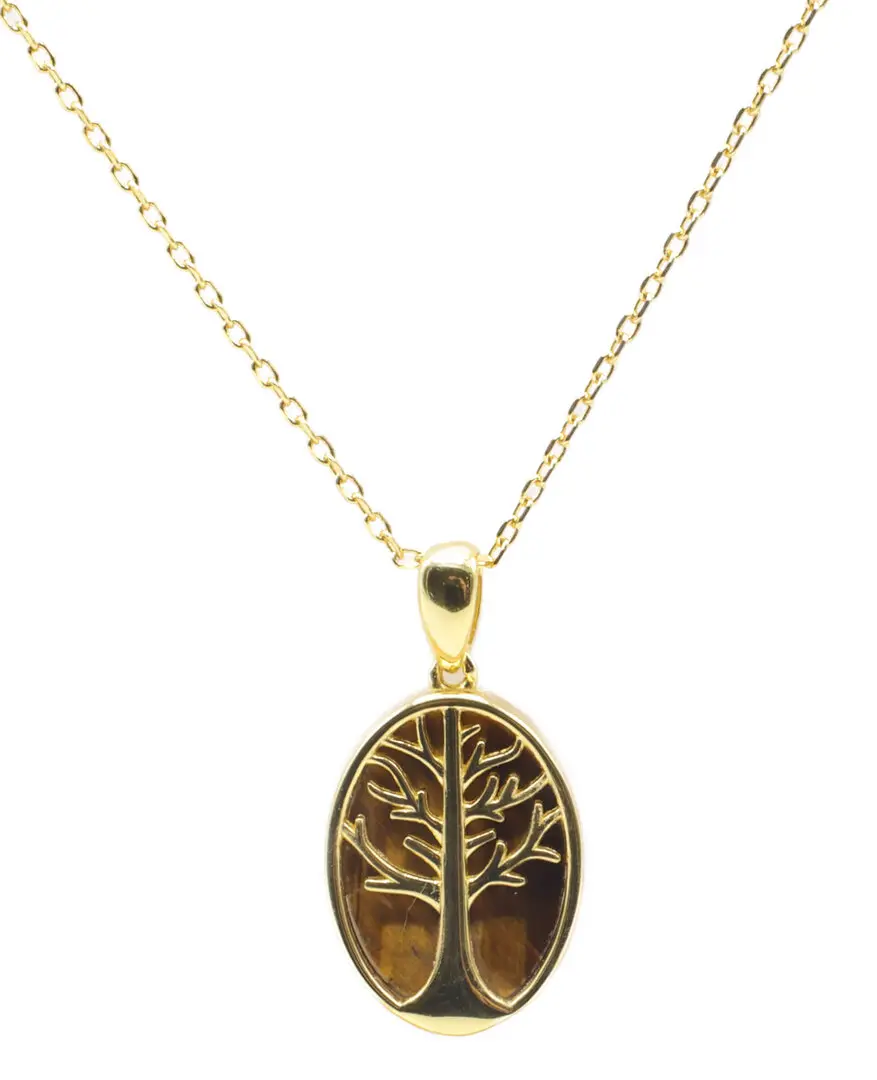 Collier en Argent 925 plaqué Or serti d'une Oeil de Tigre qualité extra.