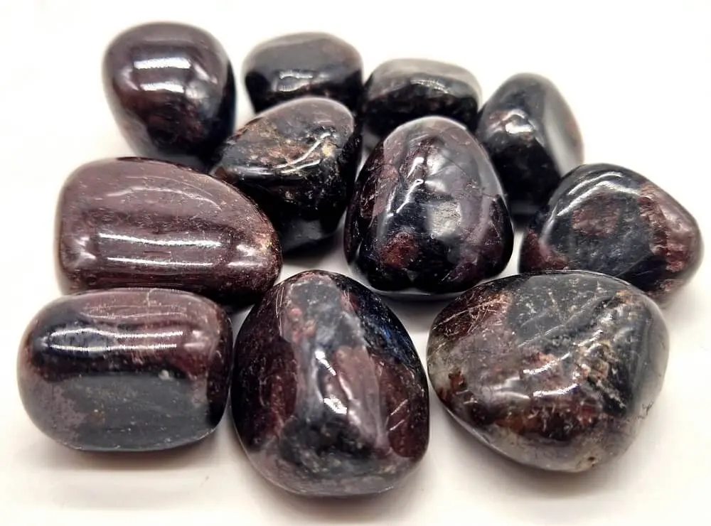 Le Grenat est une gemme rouge, c'est une référence à la grenade dont les graines ont la taille, la forme et la couleur presque identiques à la pierre. Selon ses vertus, elle serait la pierre de la santé car elle retarderait le vielllissement, régénèrerait la peau et tendrait les tissus.